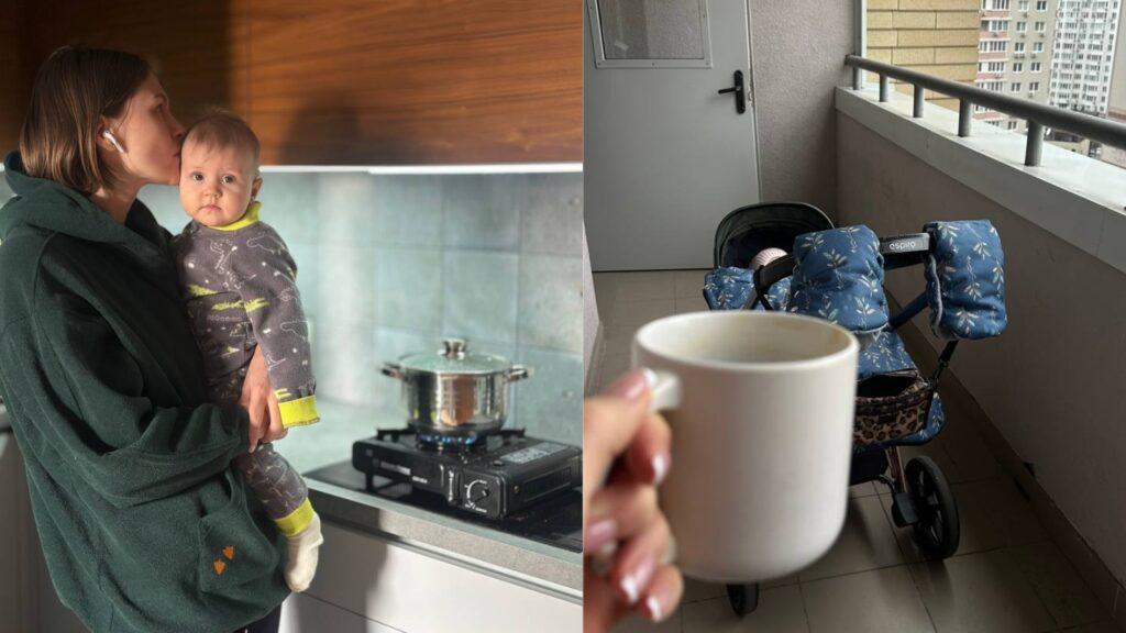 Sometimes Anastasiia works from her balcony. Her few-months-old baby sleeps there in the fresh air. During power cuts the elevator does not work, and the family cannot leave the apartment. “The balcony functions as our daily walk,” she says.
