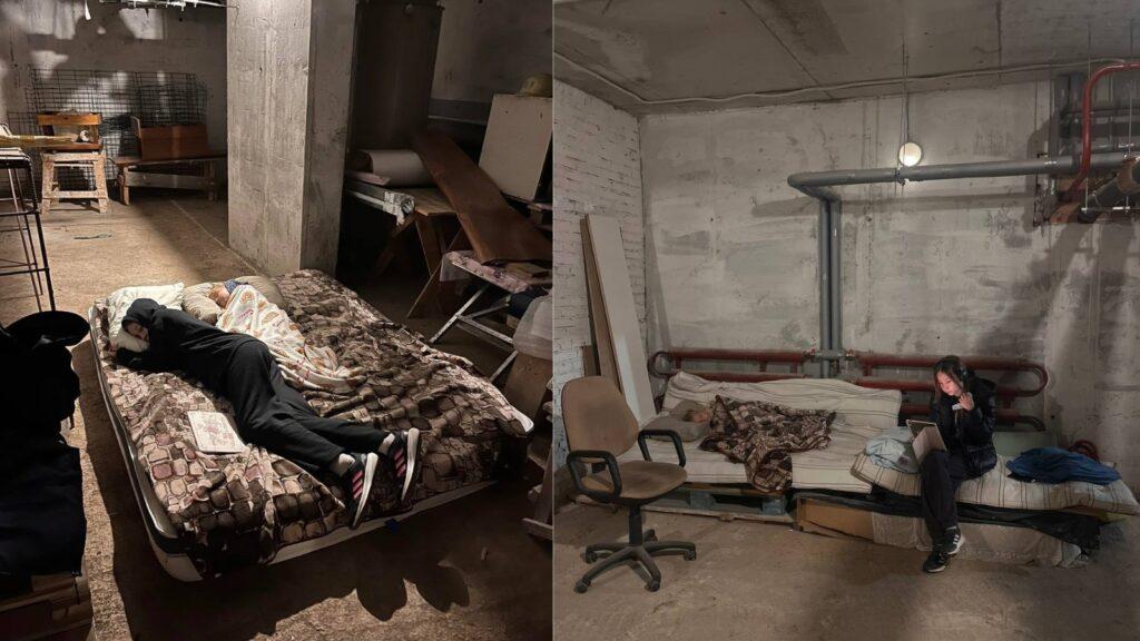 Inside the air-raid shelter it´s currently far too cold, so Anastasiia’s children sleep in the hallway.