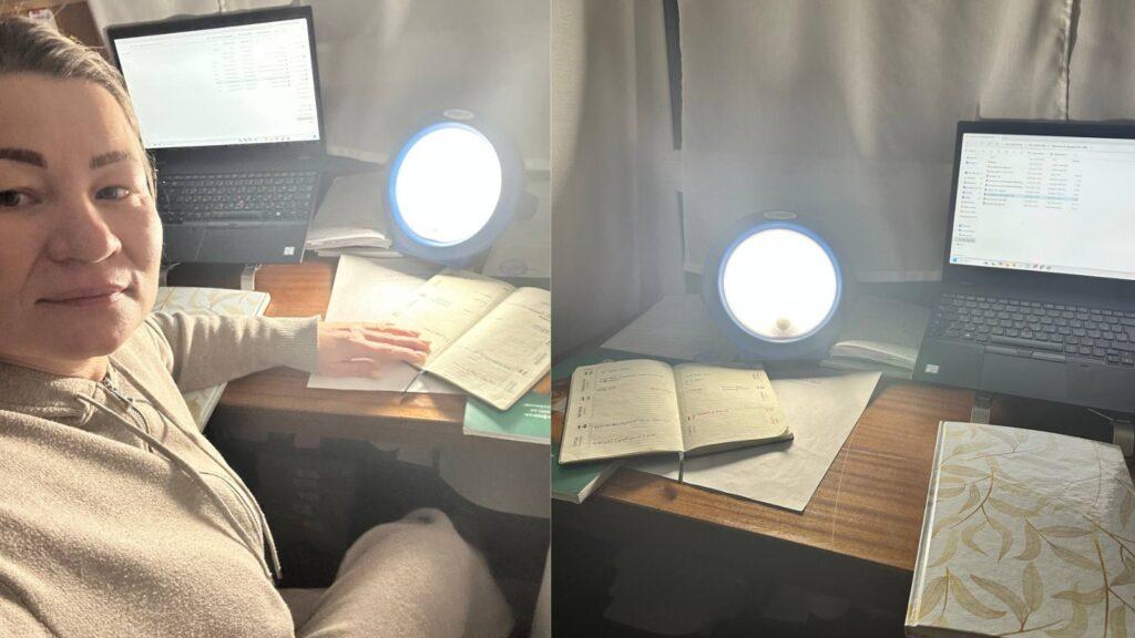 For Inna, every moment with electricity means immediate action. As soon as the power comes back, she charges devices, lamps and power banks at the same time, cooks, does the laundry and heats water. Work tasks – Zoom meetings, documents, coordination – continue as long as the internet is available.