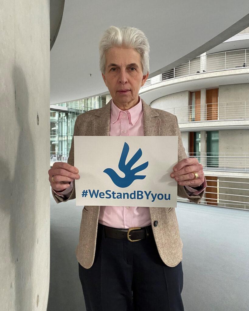 As part of our #WeStandBYyou campaign, Constance Le Grip (Renaissance, France), Barbara Gysi (Sozialdemokratische Partei, Switzerland), Cédric Wermuth (Sozialdemokratische Partei, Switzerland) and Marie-Agnes Strack-Zimmermann (Alliance of Liberals and Democrats for Europe, European Parliament) have taken over the godparenthood for Alena Rudaya, Tatsiana Kolas, Siarhei Lisouski and Aliaksandr Danilevich.